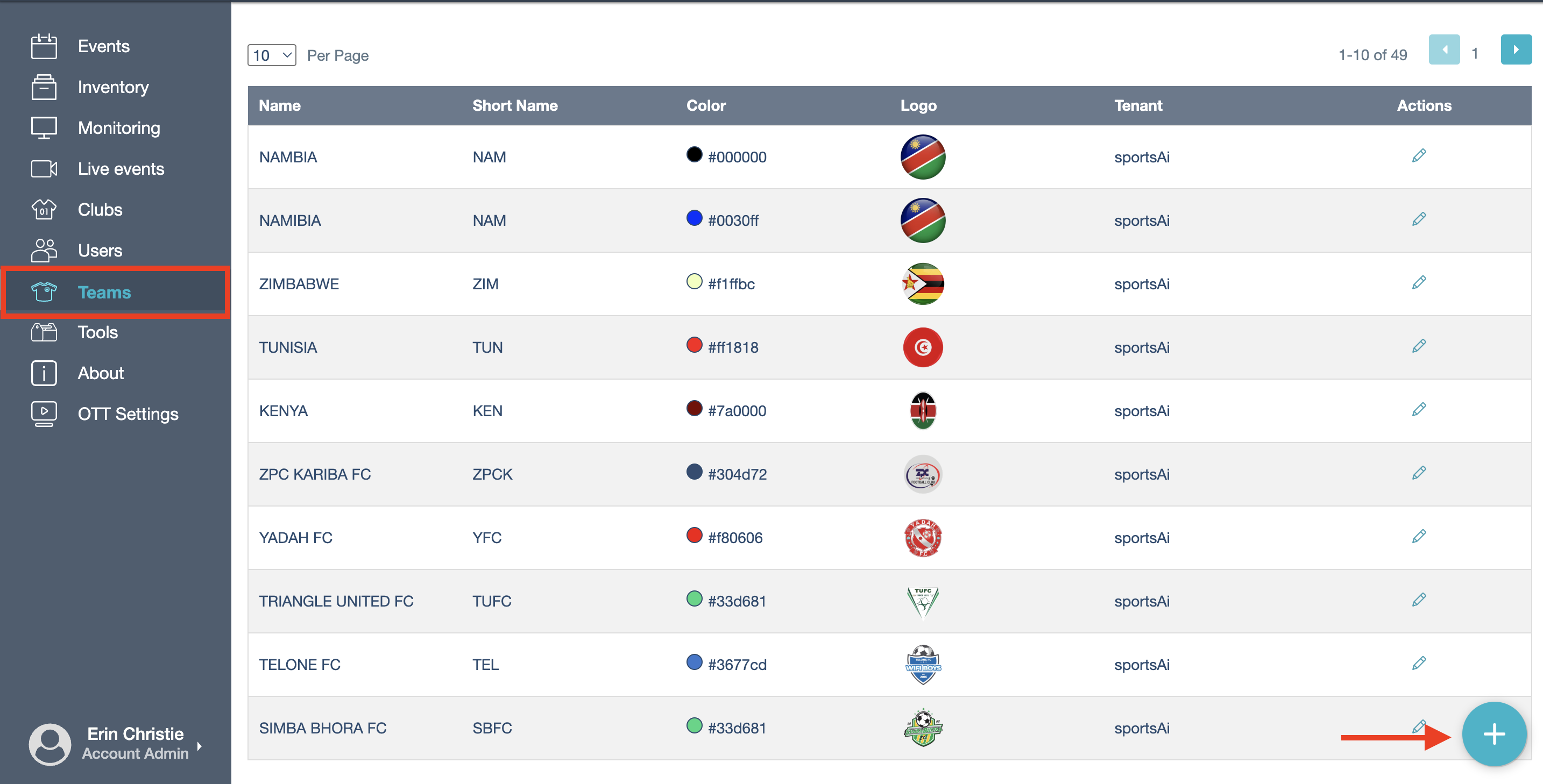 To add teams to the Pixellot CMS you will need to: